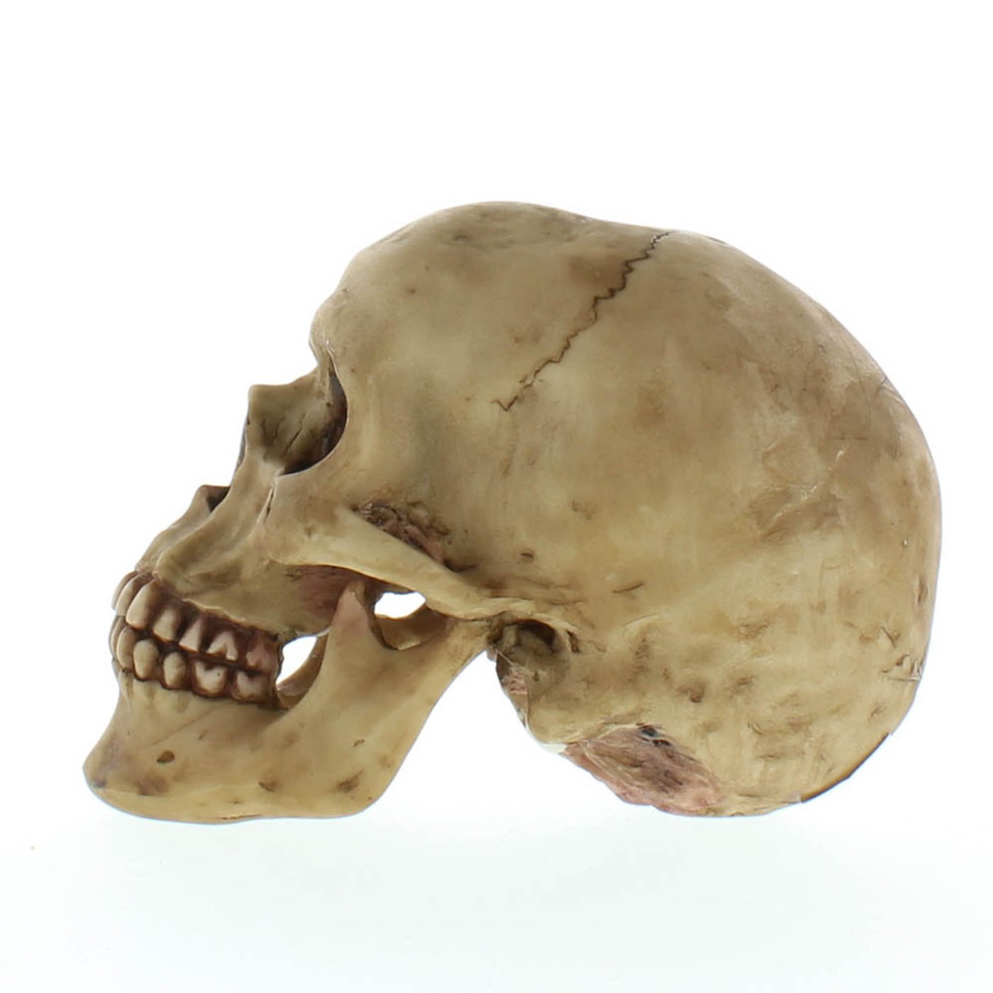 This human skull replica will be the "life" of any spooky seasonal party or themed event. It is perfect for the more gothic decorator as a stunningly scary home décor piece that is both durable and deathly. The handcrafted polyresin provides precise anatomical detail that lends to it's highly realistic quality. Use this skull for anything that comes to your head!