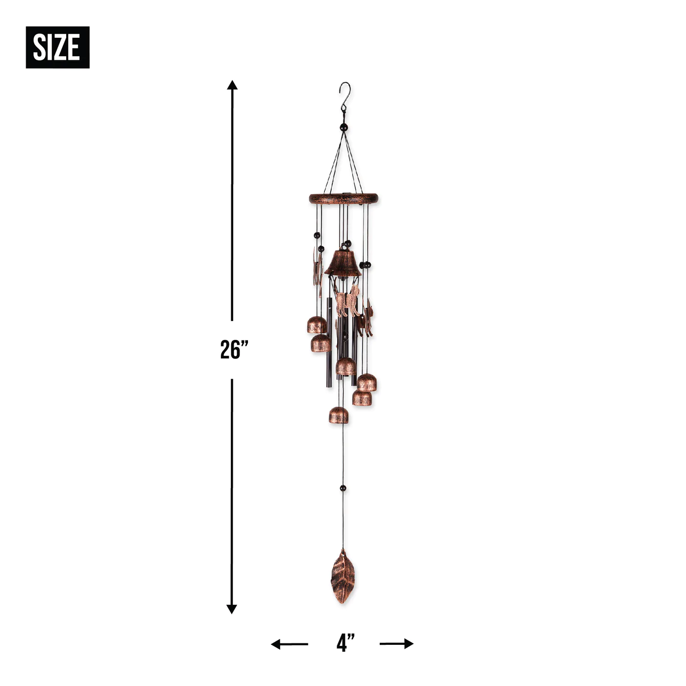 • The wind chimes weighs 0.4 lbs. and measures 4x4x26 inches.